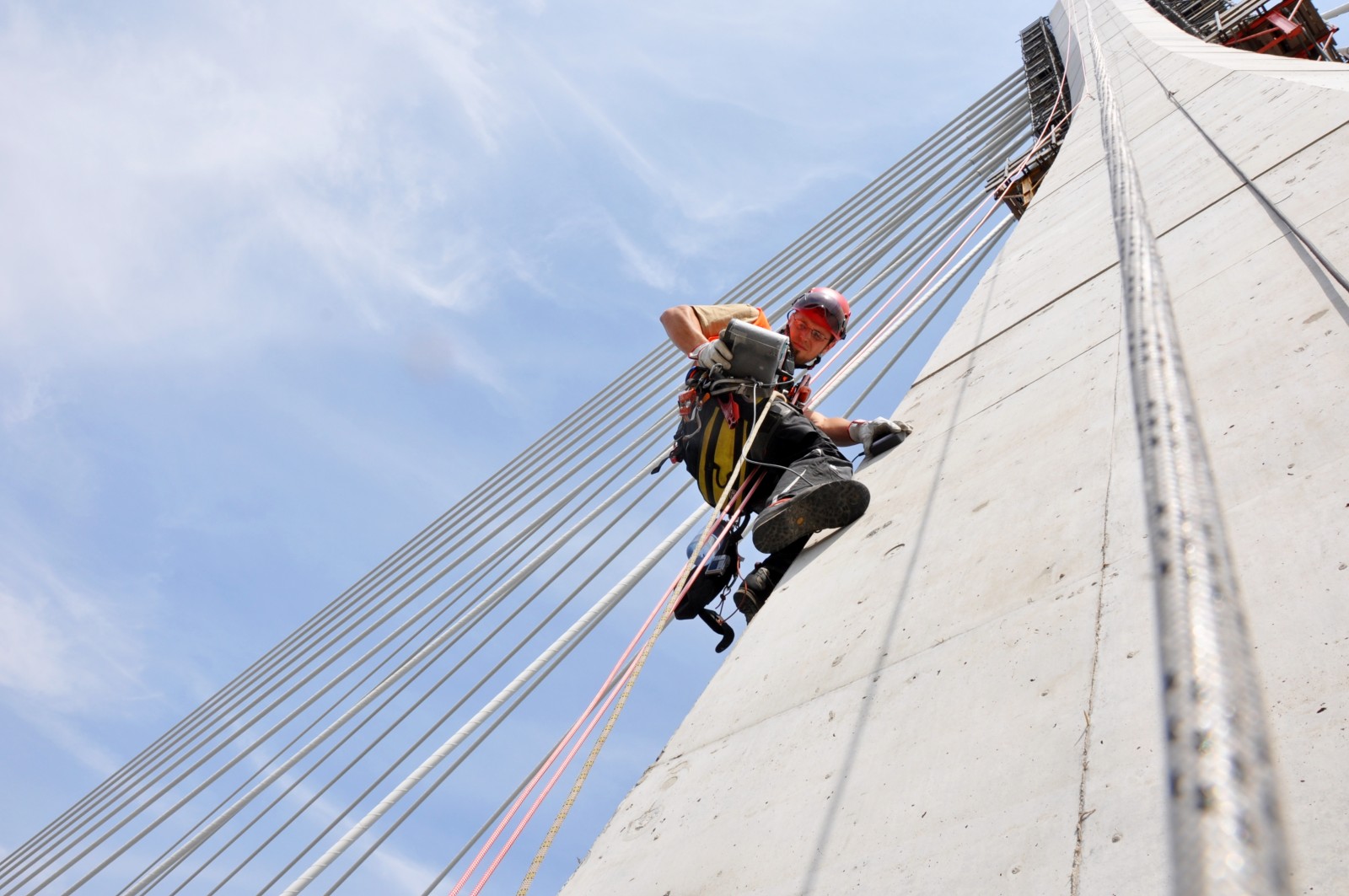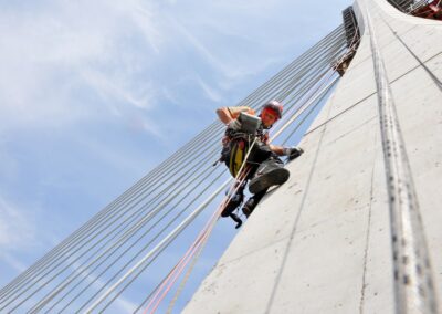 - Pylonprüfung mittels Seilzugangstechnik an der Neuen Elbebrücke Schönebeck