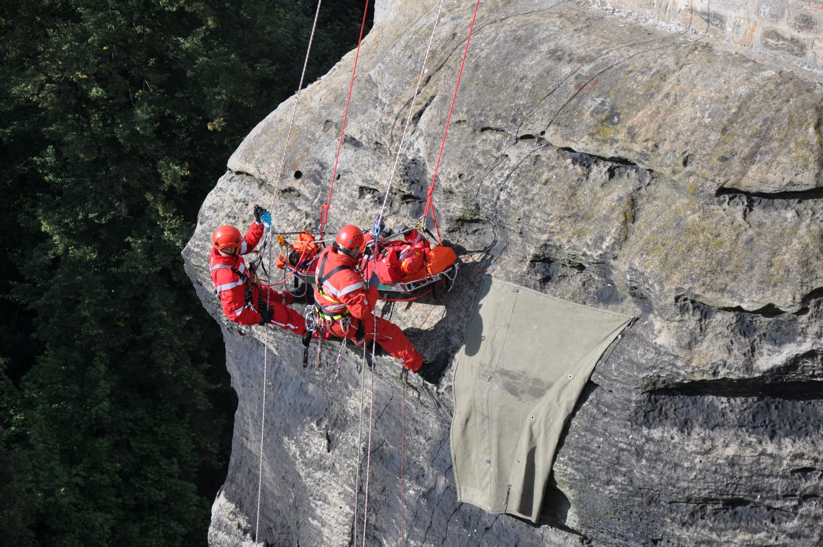 - Gefahrenbeseitigung an Felswand über Wanderweg in Rathewalde, Sächsische Schweiz