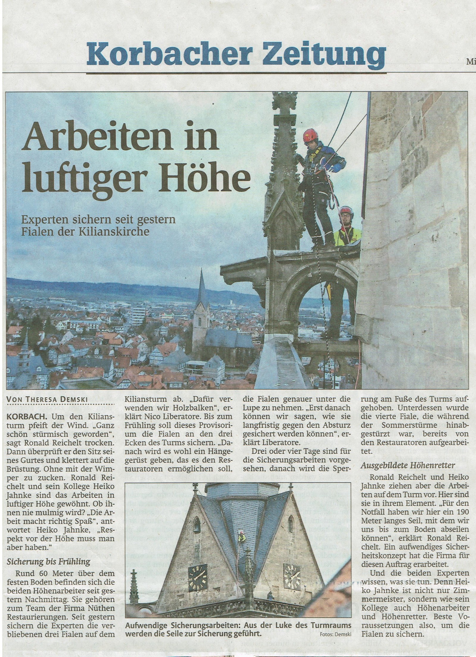 - Absturzsicherung von 3 Fialen an der St. Kilianskirche in Korbach für Denkmalpflege Nüthen GmbH